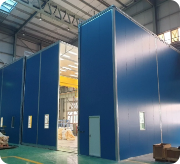 대형부스는 정비창, 비행기, 선박 등에 사용이 용이한 도장부스 입니다.